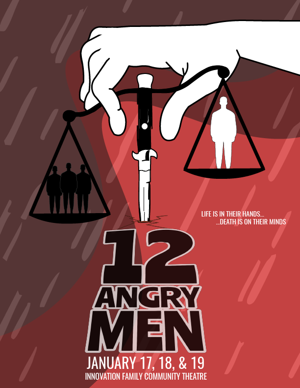 An advertisement poster designed for San Diego's Innovation Family Community Theatre's production of 12 Angry Men.